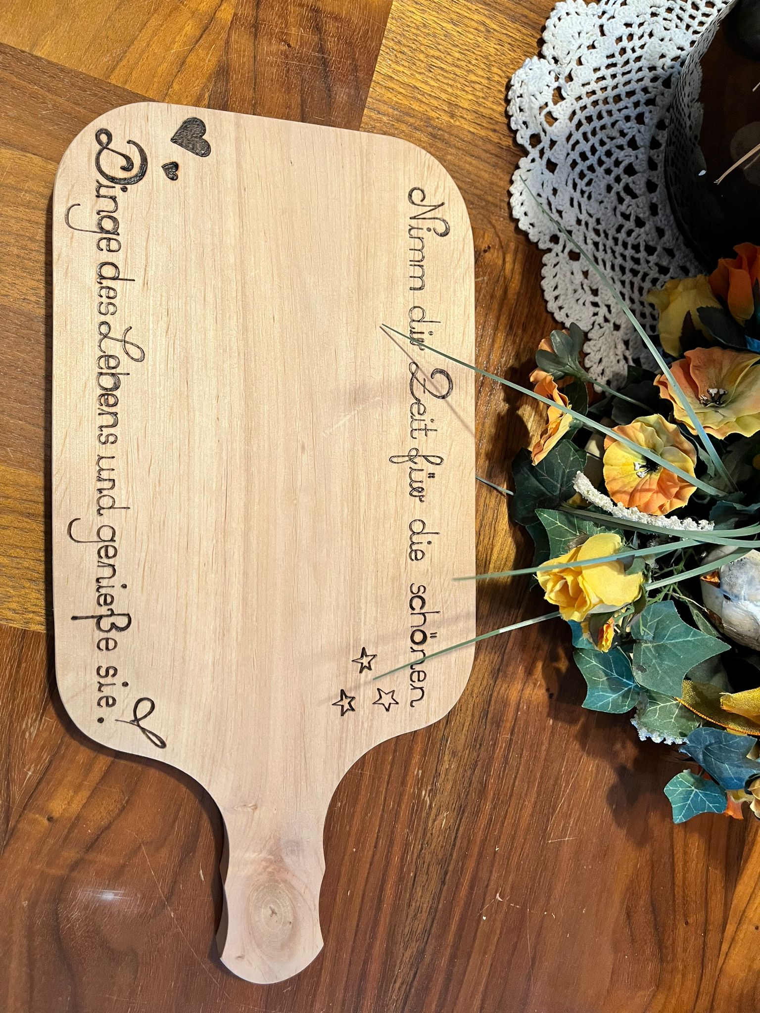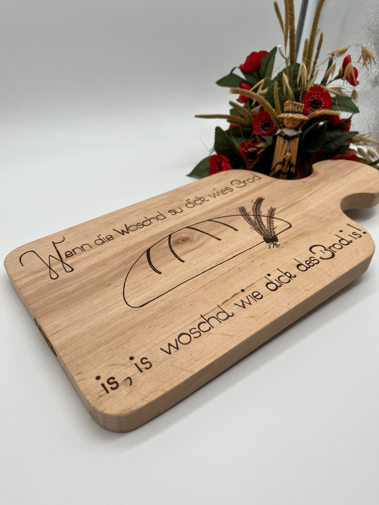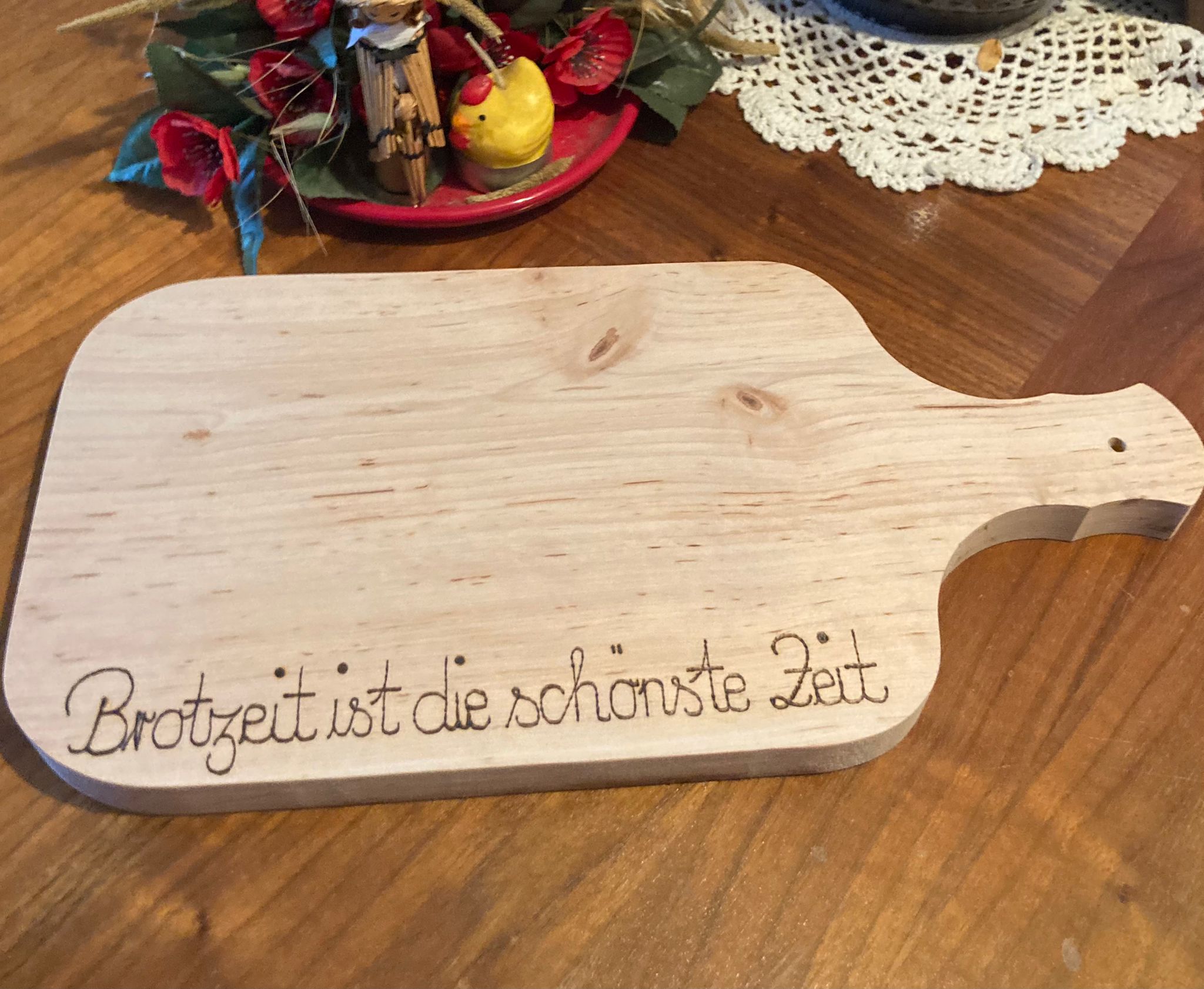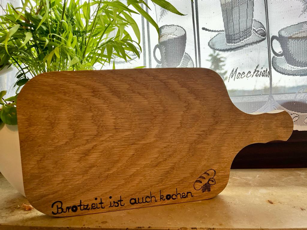 Das verzierte Brotzeitbrettchen bietet viel Platz für die tägliche Brotzeit, zum Schneiden von Gemüse fürs Kochen, oder zum kredenzen kleiner Häppchen. Durch spielerische Verzierungen mit dem Lö ...